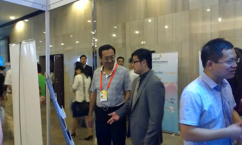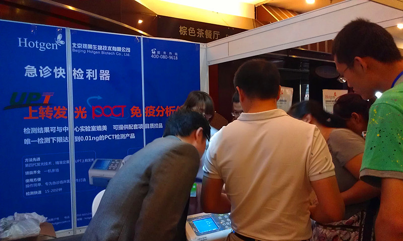 會(huì)議期間,熱景生物展示急診快檢利器——上轉(zhuǎn)發(fā)光免疫分析儀,獨(dú)特的方法,全面的產(chǎn)品,引起急診領(lǐng)域?qū)<依蠋煹母叨扰d趣,紛紛到展臺(tái)咨詢(xún)儀器的使用及產(chǎn)品的性能等,熱景生物的工作人員耐心的給參觀人員做了詳細(xì)的介紹。