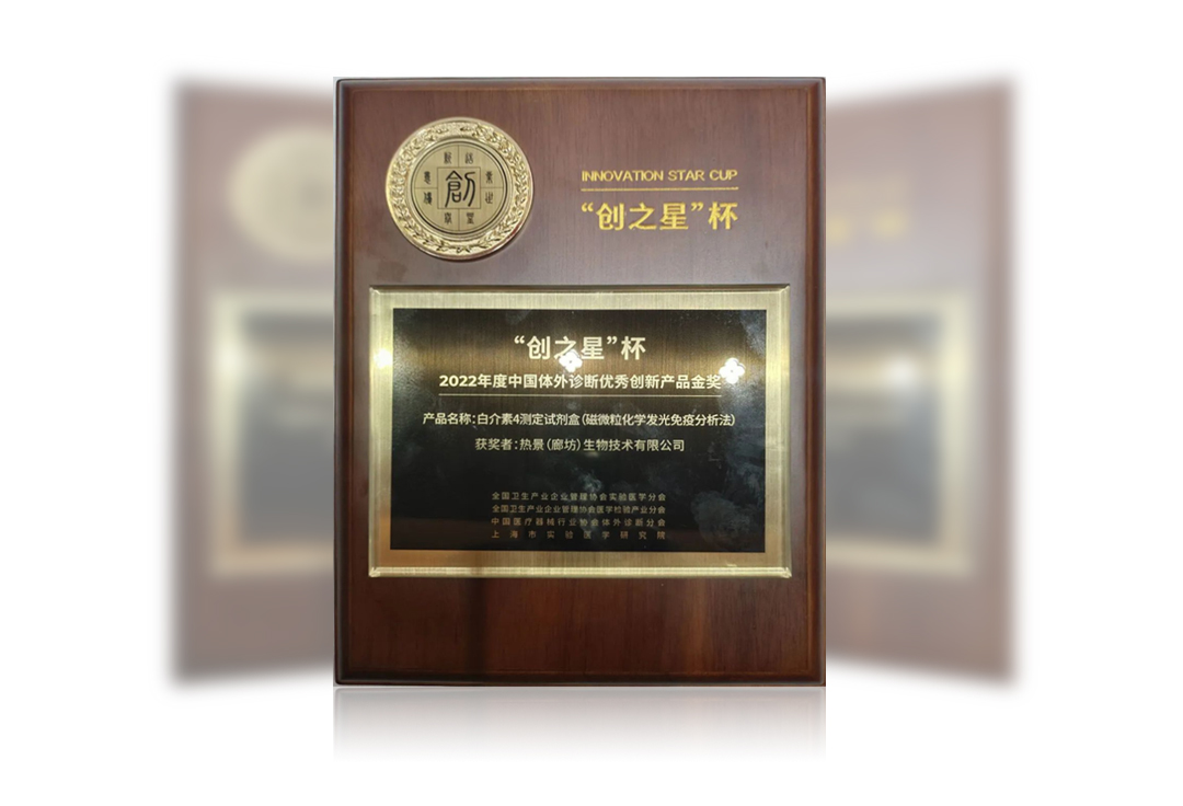 在5月27日“創(chuàng)之聲”第八屆中國實驗醫(yī)學(xué)大會現(xiàn)場,熱景生物旗下熱景(廊坊)生物技術(shù)有限公司生產(chǎn)的專有特色細胞因子系列產(chǎn)品,榮獲2022年度“創(chuàng)之星”杯中國體外診斷優(yōu)秀創(chuàng)新產(chǎn)品金獎。
