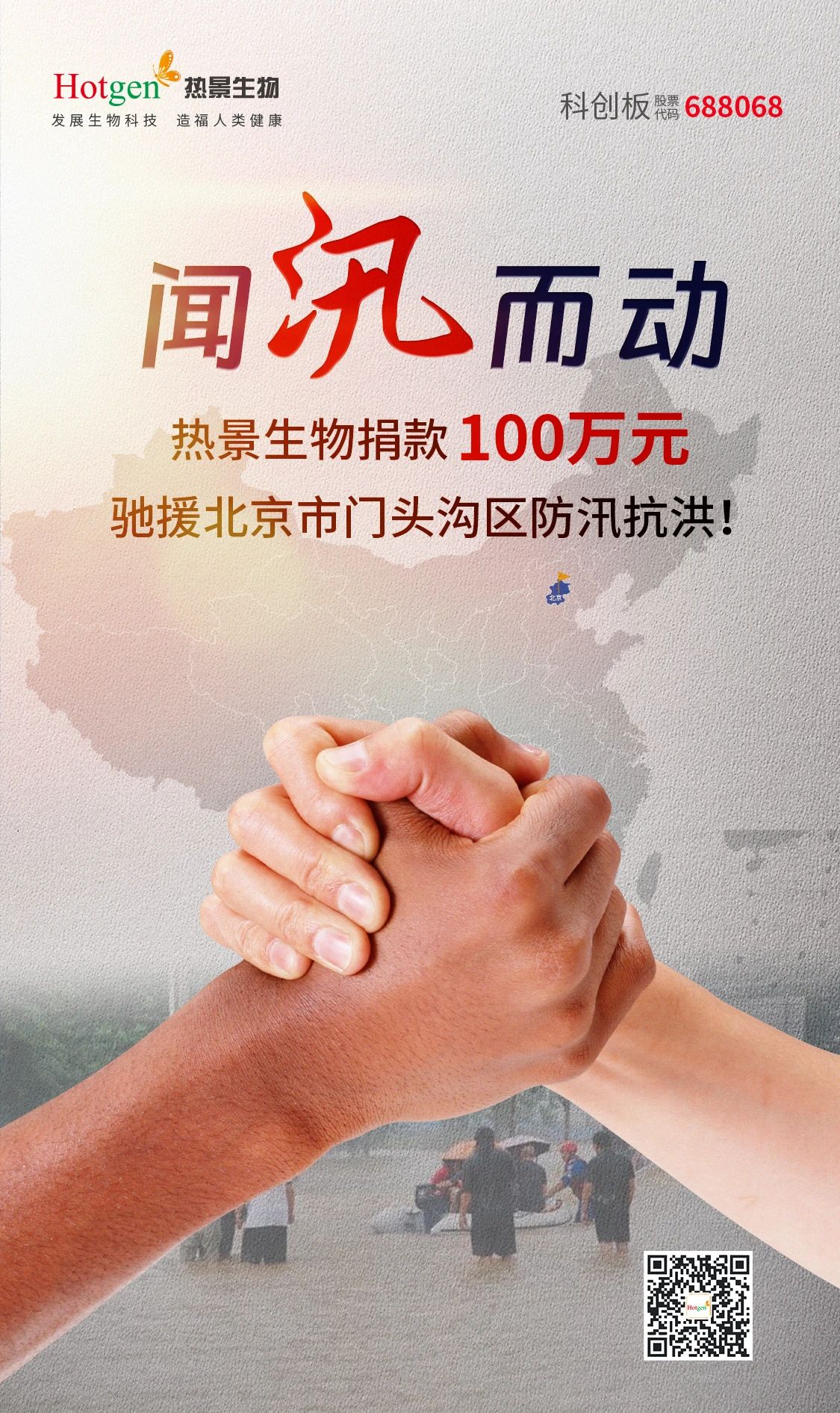 熱景生物一直密切關(guān)注著汛情救援進展,主動聯(lián)系相關(guān)部門提供支援幫助,并向北京市門頭溝區(qū)紅十字會捐贈100萬元防汛抗洪資金,助力當?shù)卣蜕鐣α靠箵魹?zāi)情。