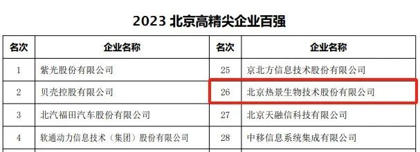 近日,北京企業(yè)聯(lián)合會(huì)、北京市企業(yè)家協(xié)會(huì)公布了2023北京企業(yè)百?gòu)?qiáng)名單,熱景生物榮登熱景生物榮登2023北京高精尖企業(yè)百?gòu)?qiáng)、2023北京制造業(yè)企業(yè)百?gòu)?qiáng)、2023北京服務(wù)業(yè)企業(yè)百?gòu)?qiáng)三大榜單!三大榜單!
