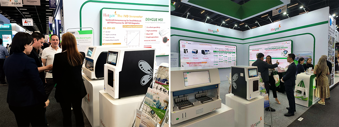 熱景生物的展位成為展會的焦點之一,并收獲了主辦方頒發(fā)的Better Stands銅獎。本次展會,熱景生物的化學(xué)發(fā)光和上轉(zhuǎn)發(fā)光免疫檢測解決方案,以及小分子免疫檢測新技術(shù)吸引了眾多參觀者的關(guān)注和贊譽(yù)。同時,公司還首次展出登革熱檢測產(chǎn)品,為熱帶地區(qū)傳染病診斷提供了新的解決方案。從高精度的診斷平臺,到高質(zhì)量診斷試劑和藥物原材料,熱景生物在各領(lǐng)域的技術(shù)優(yōu)勢和潛力獲得了與會各界的高度認(rèn)可。