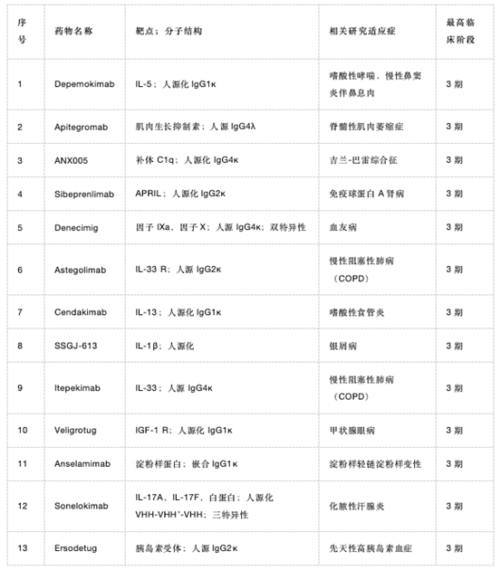 本篇我們將介紹18款有望在2025年提交上市申請(qǐng)的單抗藥物,其種5款則專門針對(duì)癌癥適應(yīng)癥,13款針對(duì)非癌癥適應(yīng)癥。