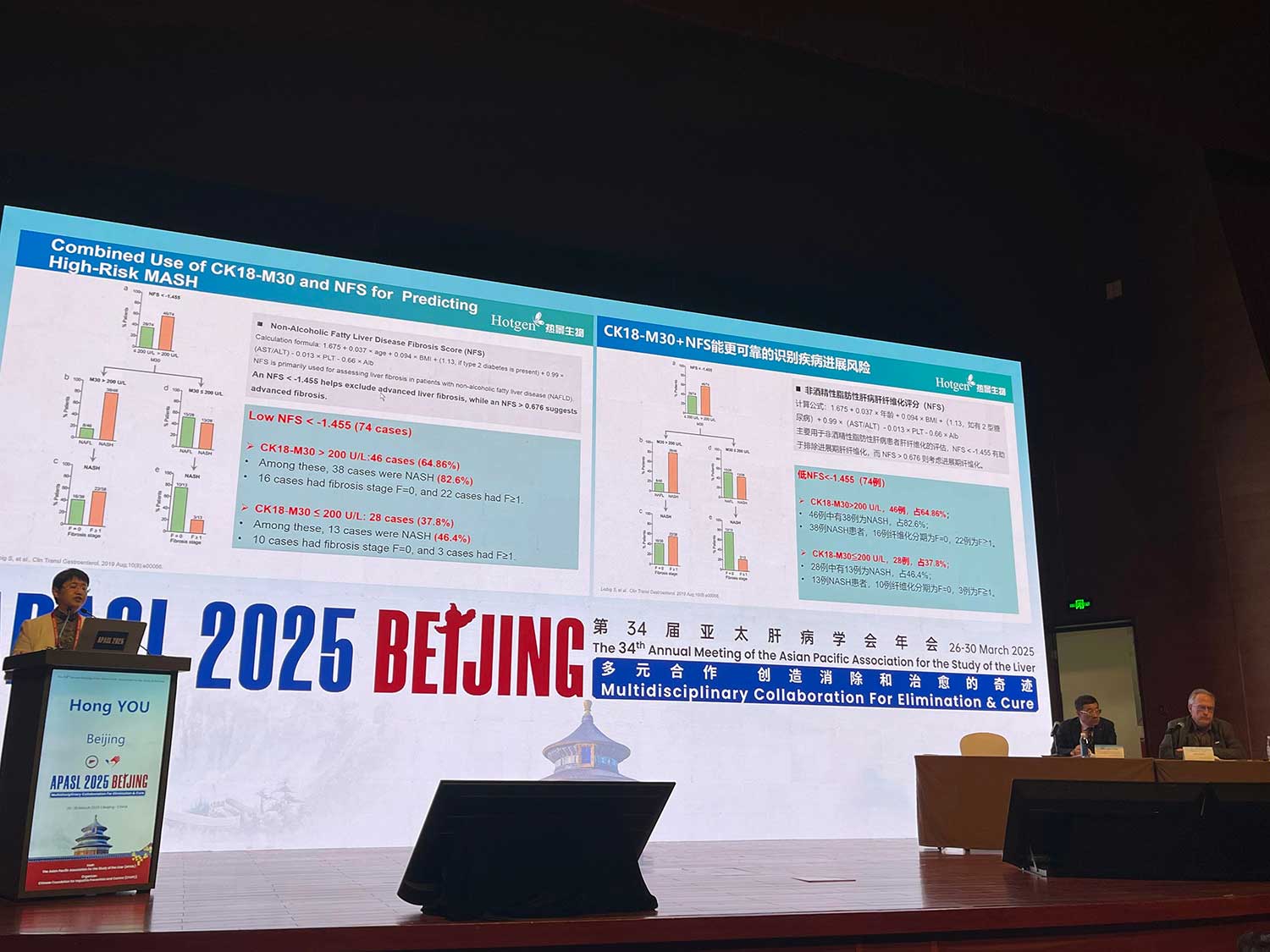 會上,MASH研究報(bào)告(《Clinical Profile and Patient Reported Outcomes (PROs) in Metabolic Dysfunction Associated Steatotic Liver Disease (MASLD) Patients Enrolled in the Global NASH/MASH Registry from Asian Countrie》)分析了全球肝病注冊(Global Liver Registry?, GLR)數(shù)據(jù)庫,其中來自亞洲的、具有完整臨床數(shù)據(jù)的NAFLD患者(n=1457)中,90.25%符合MASLD診斷標(biāo)準(zhǔn)。而在MASLD患者中,88%超重,55%肥胖(BMI>28),34%患有2型糖尿病,44%患有高血壓,40%患有高脂血癥。代謝功能障礙相關(guān)脂肪變性肝?。∕ASLD)已成為亞太地區(qū)肝健康的新威脅。在《無創(chuàng)肝臟炎癥新參數(shù)在代謝性脂肪性肝炎(MASH)中的應(yīng)用探索和驗(yàn)證》主題報(bào)告中,首都醫(yī)科大學(xué)附屬北京友誼醫(yī)院尤紅教授系統(tǒng)闡述了細(xì)胞角蛋白18(CK18)這一創(chuàng)新型標(biāo)志物在臨床管理中的突破性價(jià)值。