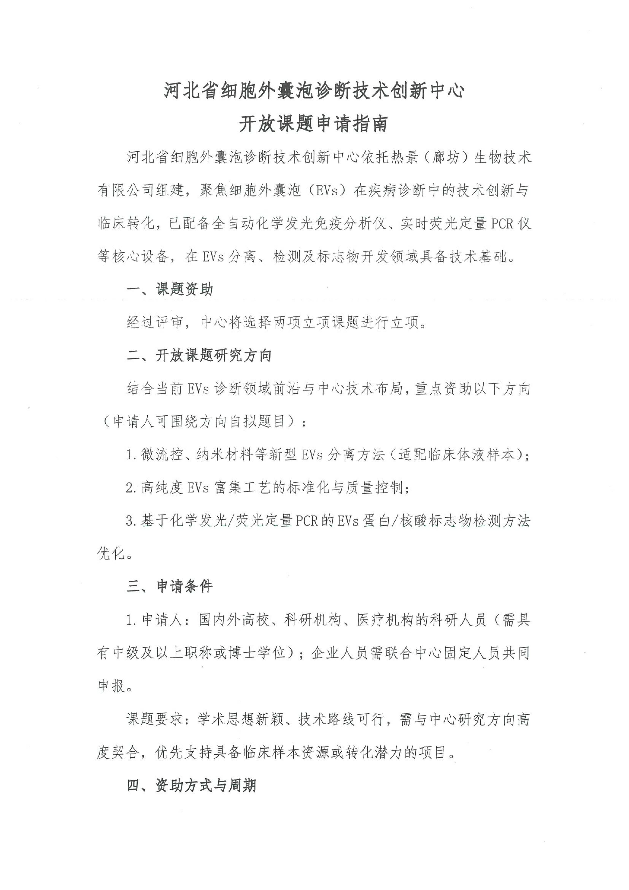 河北省細(xì)胞外囊泡診斷技術(shù)創(chuàng)新中心開放課題申請指南