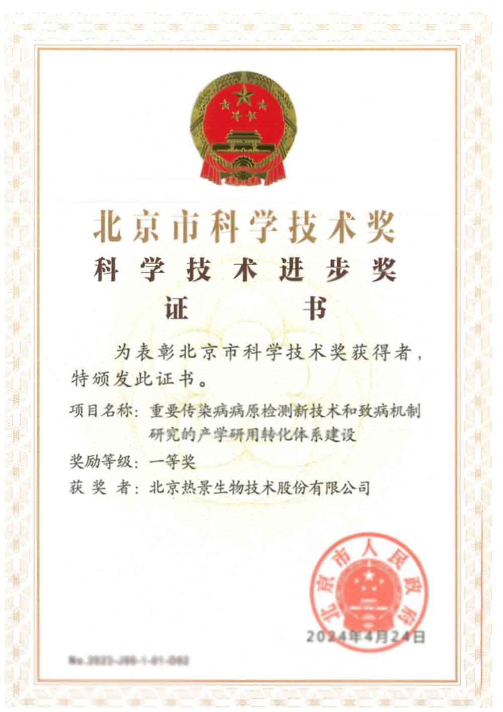 圍繞突發(fā)傳染病和生物安全需求,熱景生物持續(xù)推進應(yīng)急檢測技術(shù)與應(yīng)用體系建設(shè),曾獲認定為“生物應(yīng)急與臨床POCT 北京市重點實驗室”,系統(tǒng)布局從病原檢測技術(shù)研發(fā)到應(yīng)急場景應(yīng)用的關(guān)鍵環(huán)節(jié),形成了面向公共衛(wèi)生實際需求的技術(shù)轉(zhuǎn)化能力。2023年,由中國人民解放軍軍事科學院軍事醫(yī)學研究院、北京熱景生物技術(shù)股份有限公司、北京舜景生物醫(yī)藥技術(shù)有限公司聯(lián)合申報的“重要傳染病病原檢測新技術(shù)和致病機制研究的產(chǎn)學研用轉(zhuǎn)化體系建設(shè)”項目,榮獲北京市科學技術(shù)進步獎一等獎,標志著公司在重要傳染病檢測領(lǐng)域的科研協(xié)同能力與成果轉(zhuǎn)化水平獲得權(quán)威認可。