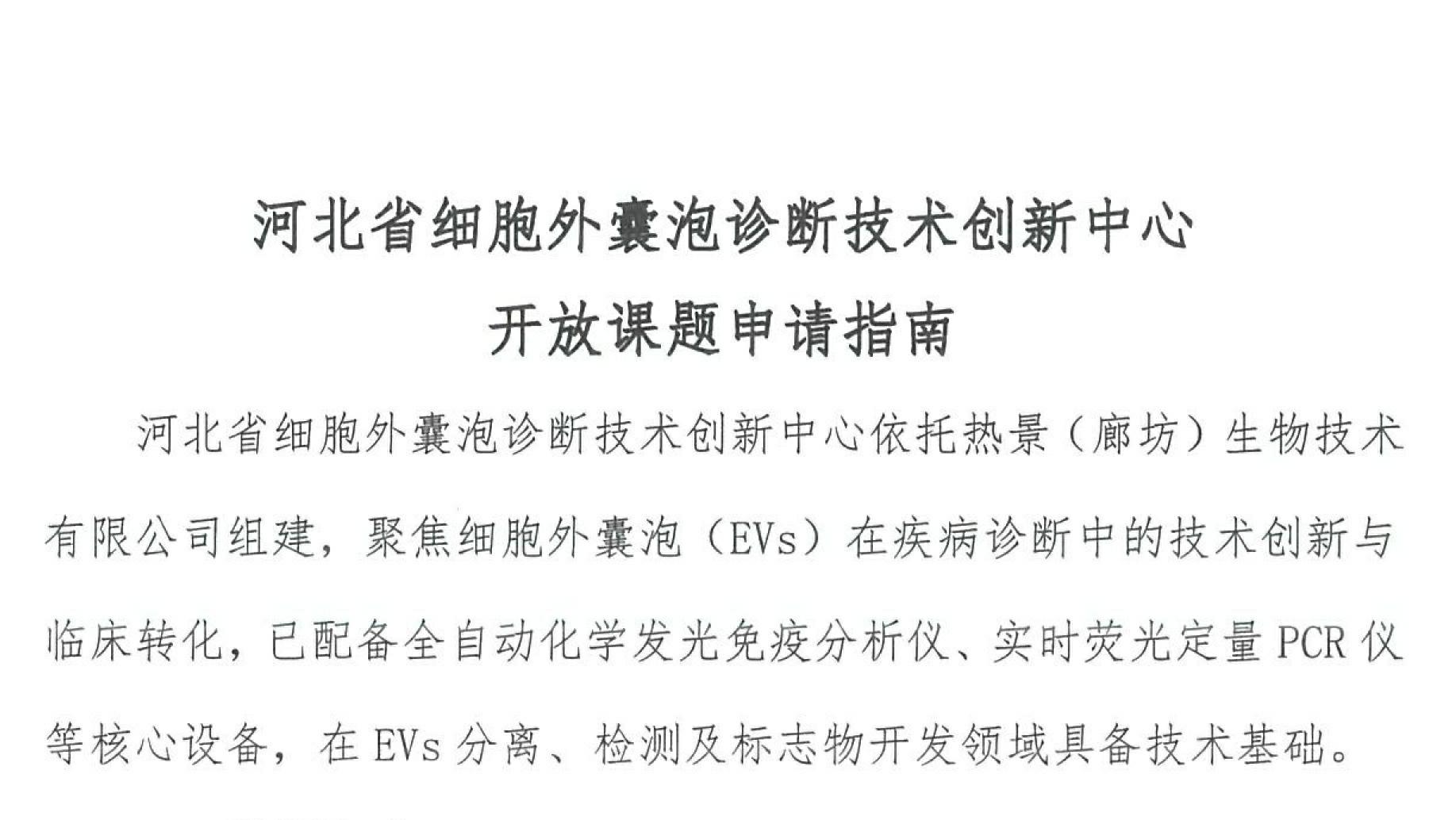 河北省細(xì)胞外囊泡診斷技術(shù)創(chuàng)新中心開放課題申請(qǐng)指南